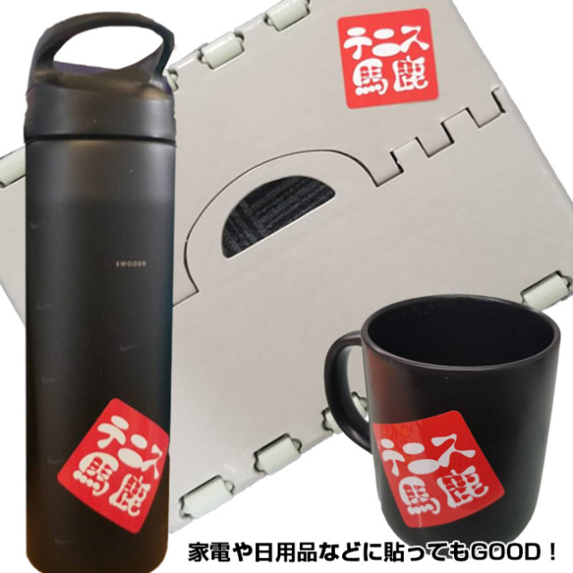 | 仕様 | 「テニス馬鹿」からオリジナルステッカー登場!大きいサイズなので、パソコンやスマホなどに貼ると目立つこと間違いなし!みんなと同じアイテムも今日から「テニス馬鹿」に早変わりです! |